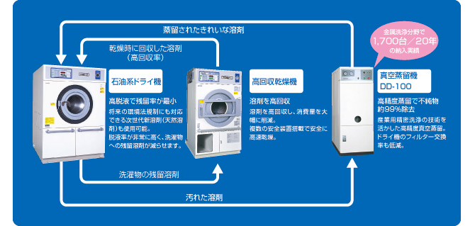 産業用精密洗浄の技術を活かした高精度真空蒸留。ドライ機のフィルター交換率も低減。