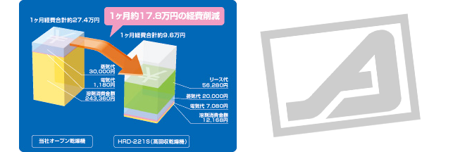 算出条件:負荷量22kg、1日16ワッシャー、25日/月稼働、溶剤180円/L、
