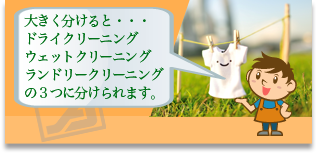 大きく分けると、ドライクリーニング・ウェットクリーニング・ランドリークリーニングの3つに分けられます。